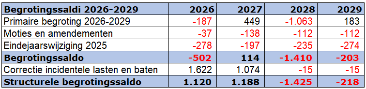 Begroting 2026-2029 na wijzigingen